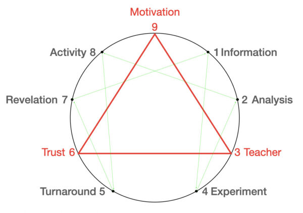 Today I call this new tool – The Learning-Teaching Compass – and I have been developing it for going on 36 years. It is based on the Enneagram – if you know it – however, this model is based upon Alexander’s story and is unique to me.